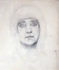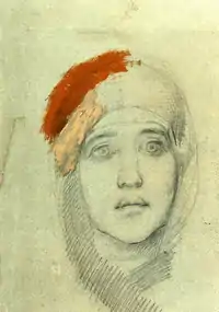 Vroubel; Émilia PrakhovaTête de femme, crayon noir, 1884.Galerie Tretiakov