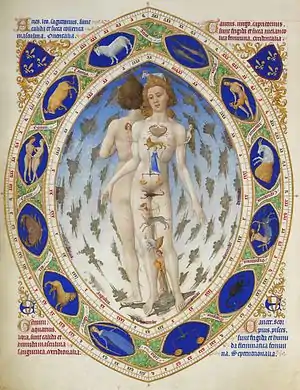 Au XVe siècle un certain relâchement se produit, marquant le début de l'évolution qui débouche, en Italie, sur la Renaissance. Ainsi, dans le Bréviaire de Marie de Savoie, réalisé à Chambéry, entre 1400 et 1450, on note la présence de petits enfants nus dans les marges[24]. On observe l'apparition de vierges allaitant, plutôt dans la sculpture que dans la peinture, comme le prouvent les réactions indignées de certains ecclésiastiques devant la Vierge à l'enfant de Jean Fouquet[25] alors que des Vierges de pierre montraient leur sein au XIVe siècle déjà. Cette Vierge a surtout choqué car elle est représentée sous les traits d'une maîtresse royale, Agnès Sorel, et qu'elle dégage un érotisme certain[25]. Cela n'empêche pas les miniaturistes des Très Riches Heures du duc de Berry et d'autres manuscrits de la même époque de représenter des nus lorsqu'ils en éprouvent le besoin[26].