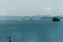 Le canal forme un chenal clairement balisé autour des îles, suivant une route en eau profonde dirigée au sud depuis les écluses de Gatún, puis vers l'est. Un raccourci appelé la « coupe Banana » entre les îles permet aux plus petits bateaux d'éviter le trafic des cargos.