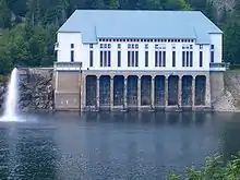 Le lac Noir et l'ancienne centrale hydroélectrique (détruite en 2014).