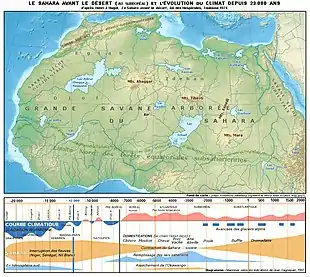 - D'après Henri J. Hugot, Le Sahara avant le désert, éd. des Hespérides, Toulouse 1974 ; Gabriel Camps, « Tableau chronologique de la Préhistoire récente du Nord de l'Afrique : 2-e synthèse des datations obtenues par le carbone 14 » in : Bulletin de la Société préhistorique française vol. 71, n° 1, Paris 1974, p. 261-278 et Jean Gagnepain.