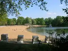 En 1929, le directeur de théâtre Guillaume Heiden-Henry de Weißensee fit construire une plage au bord du lac et en même temps transformer le Brauhaus datant de 1892[2] en une nouvelle auberge[3]. Pour le Strandbad Orankesee avec une plage de 300 mètres de long on transporta d'Ahlbeck du sable de la mer Baltique. Peu après l'ouverture de la plage, le dimanche , on compta déjà 12.000 visiteurs. Les Terrassen am Orankesee avec une cave à bière, une grande et une petite salle et deux terrasses extérieures purent accueillir 5 000 personnes et furent aussi utilisées pour des concerts ou des danses. L'auberge offrit ses services jusqu'en 1942, ensuite elle fut probablement utilisée par la Wehrmacht. Des bombardements en janvier et ont conduit à la destruction complète de la plage[3].