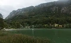Le Mondsee est un lac de Haute-Autriche Salzkammergut avoisinant l'Attersee. La rive sud-ouest marque la frontière entre les länder de Haute-Autriche et Salzbourg et entre les Alpes calcaires du Sud et la zone de grès. Une caractéristique frappante est la Drachenwand (paroi du dragon), qui domine la rive sud-ouest.