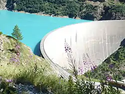 Le barrage de Place-Moulin, bâti sur le Buthier entre 1955 et 1965, est le barrage voûte le plus haut d'Europe[3]. Il a une largeur de 678 mètres et une hauteur de 155 mètres.