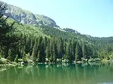 Le lac est de forme ovoïde avec une petite saillie sur sa pointe nord. Dans sa plus grande longueur il mesure 212 mètres, mais son diamètre moyen est d'une centaine de mètres. Il est bordé sur sa face nord-est du hameau homonyme.