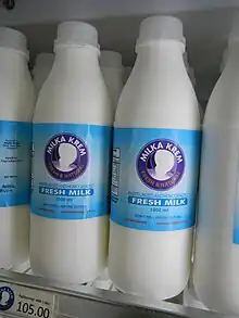 Bouteilles (en) de Milka Krem, produit laitier réalisé par le Philippine Carabao Center (en), au Central Luzon State University (en) (Philippines).