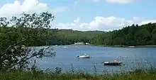 Le fond de la rade de Brest (estuaire de l'Aulne) vu des hauteurs dominant le cimetière de bateaux de Landévennec.