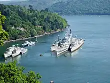 Depuis le belvédère, à l'entrée du village, la vue est imprenable sur le cimetière de navires (le croiseur Colbert, jadis destiné à la lutte anti-aérienne, y séjourna longtemps avant d'être démantelé). Depuis 2007, le lieu fait revivre le souvenir de l'ancienne station navale, quand Landévennec accueillait les bateaux de la Marine en réserve.