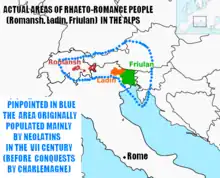 Le groupe rhéto-frioulan est le plus petit groupe des langues romanes en nombre de locuteurs. Son domaine géographique est assez éclaté, et chacune de ses parties est isolée des autres, généralement dans de profondes vallées montagnardes, d'où l'existence de nombreux dialectes et la forte concurrence des langues voisines (italien, allemand, slovène) qui se sont peu à peu substituées aux langues rhéto-romanes avec les installations de populations.