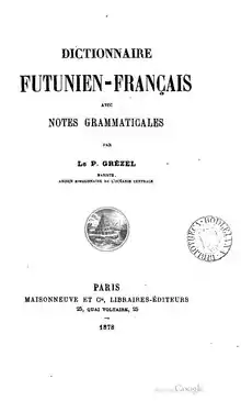 - Isidore Grézel, Dictionnaire futunien-français avec notes grammaticales, Paris, Maisonneuve et Cie., (lire en ligne)
