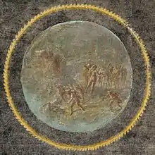 - La fin de l'âge du bronze dans la Méditerranée orientale se caractérise par une hausse des conflits et des attaques sur les villes. Celles-ci dressent des murs de bois, des palissades donc, que l'assaillant a tôt fait de franchir en les brûlant. C'est notamment ce que le tragique Euripide nous laisse penser du mur de Troie dans l'une de ses pièces — ce qui ne garantit pas d'être historique ou très proche du mythe[150]. Il semblerait néanmoins que les résistances marquées des différents sièges de la ville de Troie, conduisent à suggérer un obstacle plus robuste militairement, que doit constituer le mur d'enceinte. La description précise et fiable fait défaut dans les témoignages antiques, autant la nature des murs varient avec les époques des chroniqueurs ou des peintres. S'agit-il de mur de bois, de pierre, à la maçonnerie de brique de terre ou non ? Est-il construit sur des remblais ? Remarquons seulement que si la muraille a une existence historique, longtemps, on a pensé depuis la découverte des ruines de Troie que les imposants murs maçonnés de ce qu'on considère être aujourd'hui la citadelle, la ville haute, étaient les célèbres murs. Particulièrement depuis peu, après les travaux d'étude de Manfred Korfmann alors directeur de fouille en 2003, l'on sait la superficie de la ville beaucoup plus vaste laissant même penser à une ville basse. Cette zone sondée par analyse souterraine a en effet révélé un très long fossé encerclant les ruines connues jusqu'alors, des fouilles locales ont par la suite confirmé la nature de ce fossé pris au départ pour les bases du mur. Mais le fossé laisse fortement à penser à la véracité d'un mur de défense dont souvent les fossés sont les premiers ouvrages[note 7].