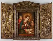 Dans la période Muromachi (1336-1573), le shishihai-togidashi maki-e, le plus compliqué des techniques maki-e, a été développé, ainsi que le taka maki-e, une nouvelle technique utilisant des meules et des poudres d'argile[14],[13],[15],[16]. La laque japonaise était abondamment exportée vers l'Asie de l'Est voisine, l'Asie du Sud-Est et même en Inde. La laque (en particulier japonaise) était connue dans les tribunaux indiens et figurait parmi les cadeaux offerts par les Européens aux dirigeants locaux. La laque japonaise était bien connue de Sir Thomas Roe, par exemple, comme un type de cadeau approprié à l'empereur Jahângîr, et il note en 1616 que les raretés de la Chine et du Japon étaient hautement désirables en Inde[16],[17],[15].