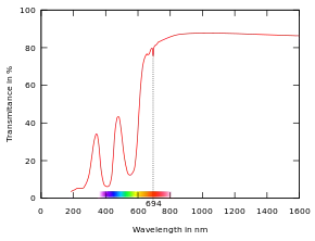 Le laser à rubis est un laser à trois niveaux d'énergie. Le rubis a des bandes d'absorption larges et puissantes dans le visible à 400 et 550 nm ainsi qu'une très longue durée de fluorescence de l'ordre de trois millisecondes. Ceci permet des excitations très énergétiques car la durée des impulsions est beaucoup plus longue qu'avec d'autres matériaux. Alors que le rubis présente une très large absorption, son efficacité est plus faible qu'avec d'autres milieux[4].