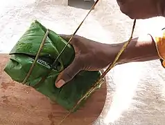 Les jeunes feuilles sont cuisinées en légumes, parfois seulement en situation de pénurie. On les utilise aussi pour envelopper les bâtons de manioc (chikwangue[2]).