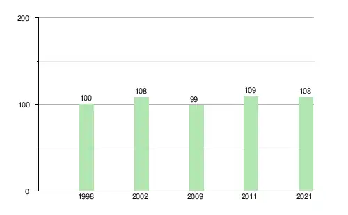 En 2021, le village de Laski Wielkie comptait 108 habitants, en augmentation de 8 % par rapport à 1998[6]. En 2021, 60,2 % des habitants du village de Laski Wielkie sont en âge de travailler (entre 18 et 64 ans pour les hommes et 18 et 59 ans pour les femmes). 17,6 % des habitants ont moins de 18 ans et 22,2 % ont l'âge légal de la retraite. Les personnes en âge de travailler représentent 59,5 % de la population de la voïvodie de Couïavie-Poméranie et 59,5 % de la population de Pologne. Ainsi, le taux de dépendance démographique du village de Laski Wielkie est équivalent à celui de la voïvodie de Couïavie-Poméranie et équivalent à celui de la Pologne[7].