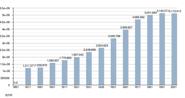 En 1870, à la suite de la défaite française lors de la Guerre franco-allemande de 1870, l'Empire français n'est plus en mesure de protéger les États pontificaux. L'armée italienne entre donc dans Rome par la Porta Pia le 20 septembre, dans ce qui sera plus tard appelé la Prise de Rome. Rome et le Latium sont dès cette date complètement annexés au royaume d'Italie. La capitale du royaume est officiellement transférée de Florence à Rome l'année suivante. En trente ans, c'est-à-dire jusqu’en 1900, la population augmente, et on voit le début d'une industrialisation de la région[48].