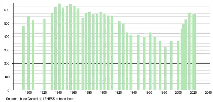 | Population municipale | 569 hab.  (2021  ) | ||||