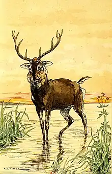(7) Le bois du cerf tombe chaque année au printemps, et se refait au mois d'août orné d'une nouvelle ramification (les pointes supplémentaires sont nommées andouillers)