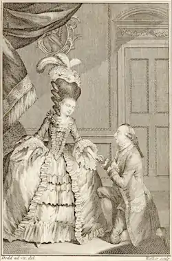 | Lady Plyant ―  Je jure, monsieur Careless, que vous êtes très attirant, et que vous dites des choses très délicates, et rien n’est plus touchant pour moi qu’une chose délicate. Et puis je dois vous rendre cette justice que personne jusque là ne m’a captivée autant que vous-même. Je reconnais en rougissant que vous avez ébranlé, si je puis dire, les fondements les plus profonds de mon honneur. Il est certain que si j’échappe à vos sollicitations, je m’en honorerai toute ma vie, je le jure. |