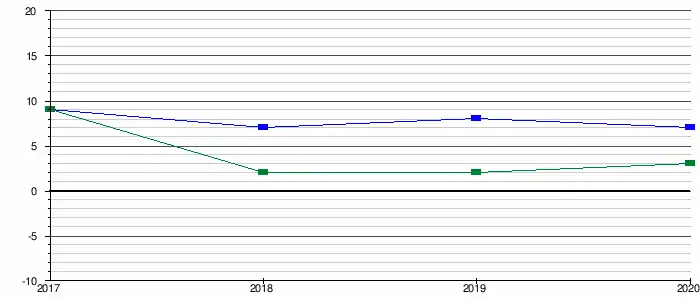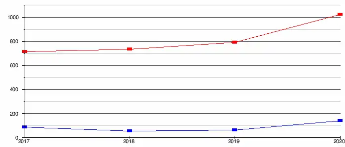 - la capacité d'autofinancement (CAF) pour 5 950 000 €, soit 139 € par habitant. La capacité de désendettement est d'environ 7 années en 2020. Sur une période de 4 années, ce ratio présente un minimum d'environ 7 années en 2020 et un maximum d'environ 13 années en 2018.