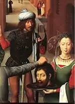 D'après la Bible, Jean-Baptiste était cousin et précurseur du Christ. Il est décapité sur l'ordre d'Hérode, fils d'Hérode le Grand, le tyran qui avait ordonné le massacre des Innocents après avoir reçu les rois Mages. L'historien romain, Flavius Josèphe, décrit ce fils comme un souverain paisible, mais selon la tradition chrétienne, il fait arrêter le prophète Jean-Baptiste qui dénonçait son adultère avec Hérodiade, l'épouse de son propre frère. Lors de la fête donnée pour son anniversaire, Salomé, la fille d'Hérodiade, danse si bien qu'elle obtient pour sa mère la tête de Jean-Baptiste présentée sur un plateau.