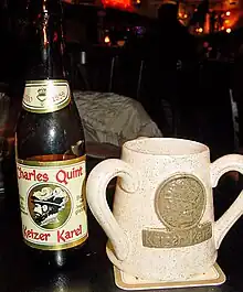 Afin d’honorer l’empereur et de lui montrer que les Campinois avaient de belles manières, il fut décidé de fabriquer des pots munis d’une anse. Mais, lorsque le souverain arriva dans le village, la personne qui lui offrit une pinte de bière tint le récipient par la poignée et donc, Charles Quint fut contraint de prendre l’objet à pleines mains!