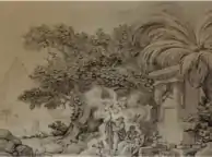 L’artiste a aussi pu s’inspirer d’aquarelles représentant des paysages et des monuments réalisées lors du voyage en Asie Mineure de Louis-François Cassas et exposées à Rome au palais du cardinal Bernis.
