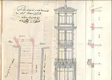 - Plan du bâtiment de 1913 conservé aux archives de la Ville de Verviers. (Archives communales de la Ville de Verviers, Bâtisse, Place du Martyr no 16).