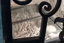 Les ossements ont été rassemblés en 1793 par Jean-François Bardot, le curé de l'église, après que les révolutionnaires eurent profané les cercueils des caveaux de la collégiale Saint-Maxe. Il se trouve probablement les ossements de[19] :