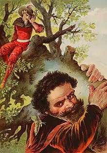 Défié par le roi, le tailleur provoque fréquemment des géants. Illustration d'Alexander Zick. | |