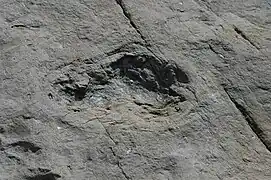 - Les empreintes des pas et toutes autres traces d'activité (bioturbation, fouissement, etc.) ne pouvant pas être précisément rattaché à un organisme, les paléontologues utilisent des termes de la systématique (genre, espèce) pour décrire et grouper les empreintes.