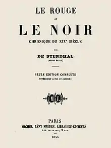 Le Rouge et le Noir, sous-titré Chronique du XIXe siècle, puis Chronique de 1830, est un roman écrit par Stendhal, publié pour la première fois à Paris chez Levasseur le [1], bien que l'édition originale[2] mentionne la date de 1831. C'est son deuxième roman, après Armance.