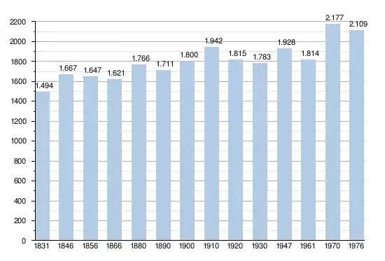 - Sources : INS, Rem. : 1831 jusqu'en 1970 = recensements, 1976 = nombre d'habitants au 31 décembre[2].