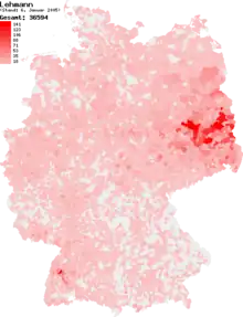 Répartition du nom de famille Lehmann en Allemagne (2005)