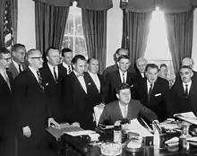 En 1961, Billings décline l'offre de Kennedy de le nommer premier chef du Peace Corps, directeur d'une nouvelle agence de promotion du tourisme, le US Travel Service, ou ambassadeur au Danemark.[20] Il a déclaré plus tard : "J'ai réalisé que je ne voulais pas travailler pour le président - parce que je sentais que cela changerait notre relation." [21] En septembre 1961, il a accepté une nomination au conseil d'administration du futur Centre culturel national. , qui devint plus tard le Kennedy Center.[21][22] L'année suivante, Kennedy l'a nommé à un conseil d'administration pour planifier la participation de l'Amérique à l'Exposition universelle de New York de 1964–5.[23] Il a représenté le président lorsque l'association des anciens a dévoilé le portrait de Kennedy à Choate en mai 1963.[24]