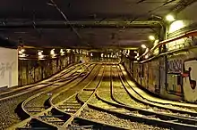 - la station des lignes 3 et 4 avec deux voies encadrées par deux quais latéraux sur l'axe principal ;