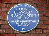 - No 8 : maison de comte Edward Raczynski, homme d'État polonais, qui a vécu à cette adresse de 1967 à 1993, comme le signale une plaque bleue en façade.