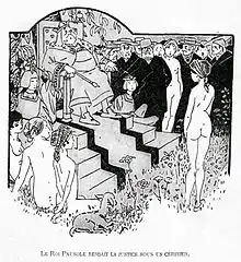 Le roi Pausole simplifie le Livre des Coutumes hérité de ses ancêtres, et édicte le Code de Tryphème, de deux articles : « 1 - Ne nuis pas à ton voisin. II - Ceci bien compris, fais ce qu'il te plaît. » Il dispose d'un harem de 366 jeunes reines, qui passent chacune une nuit par an avec le roi.