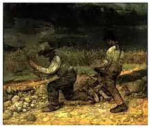 « Ce tableau teinté de gris, avec ses deux hommes aux mains calleuses, au cou halé, était comme un miroir où se reflétait la vie terne et pénible des pauvres[10]. » (Jules Vallès, 1866.)