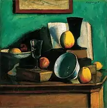 Berény, Czobel et d'autres jeunes peintres hongrois fréquentent ainsi les académies parisiennes Julian, Colarossi et Matisse (dans les années 1908-1910 pour cette dernière). Ils visitent les musées, celui du Luxembourg, où sont exposés les impressionnistes et les galeries, notamment Durand-Ruel et Vollard où ils découvrent les œuvres de Paul Gauguin, Georges Seurat ou encore Vincent van Gogh[3]. Leurs œuvres[4] apparaissent une toute première fois au Salon d'automne de 1905, à côté de la salle que l'on a réservée à des tableaux aux couleurs vives et que le journaliste Louis Vauxcelles appelle par dérision les « Fauves ».