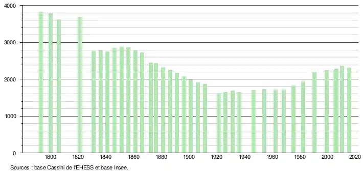 - Population municipale légale en vigueur au 1er janvier 2018, millésimée 2015, définie dans les limites territoriales en vigueur au 1er janvier 2017, date de référence statistique : 1er janvier 2015.