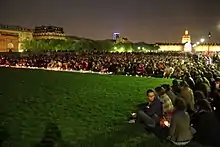 À la suite du rassemblement de La Manif pour tous le dimanche , assis sur les pelouses de l’Esplanade des Invalides, un groupe de 150 jeunes brave l’ordre de dispersion et entonne des chants, l'un d'entre eux brandit même un portrait de Gandhi[12].