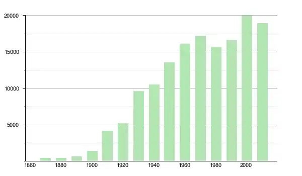 | 1950 | 13 571 | ▲ +28,64 % | |