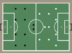 - Pour formation en W-M, tactique mise au point par les Anglais (Herbert Chapman) dans les années 1920, à la suite de la réforme de la règle du hors-jeu. Elle doit son nom à la position des joueurs sur le terrain, qui vue d'en haut forme les deux lettres W et M. Cette tactique s'articule sur le M à l'arrière — 3 arrières, 2 demi-ailes — et sur le W à l'avant — 2 milieux de terrain (inters), 3 avants de pointe.