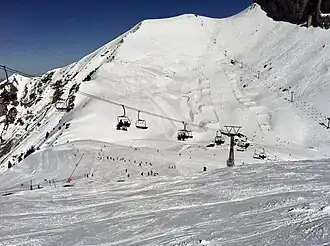 Une station de sports d'hiver de taille moyenne a été aménagée sur les pentes de la montagne.