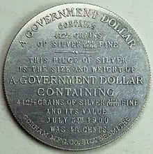 Mais à la fin de la guerre, la conquête de l'Ouest bat son plein et la production américaine d'argent-métal bénéficie de l'ouverture de multiples petites mines artisanales un peu partout dans l'Ouest américain. Du coup, le métal est progressivement trop abondant sur le marché mondial. Sa valeur chute. De nombreuses pièces d'argent américaines valent plus cher que leur poids en métal. Pour enrayer cette chute, le gouvernement décide dès 1873 de faire voter le le Coinage Act de 1873[1], premier accroc au bimétallisme et qui déclenche une mobilisation dans l'Ouest, en faveur de la « Libre frappe de la monnaie », nouveau slogan des petites villes minières ou agricoles, les fermiers espérant que cette « libre frappe de la monnaie » favorise une certaine dose d'inflation, permettant de rembourser plus facilement leurs dettes.