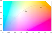 Inversement, la projection d'un point du diagramme de chromaticité sur ce lieu de Planck détermine la température de couleur de ce point.