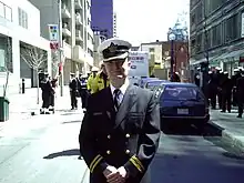 Son insigne, sur la manche et sur l'épaule, est composé de deux galons et demi pour le 1re classe et de deux galons pour le lieutenant[1].