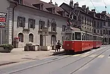 Au cours des années 1970, deux essais de matériel roulant provenant du tramway de Bâle ont lieu[24] : Entre juillet et c'est la Duewag no 138 du BEB (Birseckbahn) qui est testée, suivie en par la rame de type Be 4/6 no 202 du BLT accompagnée de la remorque B no 1447 des BVB.