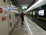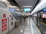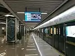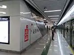 Quai protégé par un mur anti-suicide de la gare du centre des Congrès et des expositions. | |